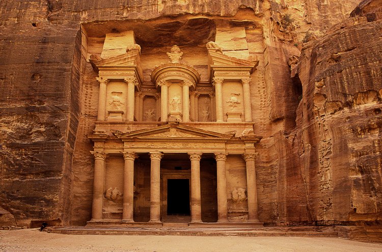 Petra es un importante enclave arqueológico en Jordania, y la capital del antiguo reino nabateo, cuyos pobladores la llamaban Raqmu. El nombre de Petra proviene del griego que significa piedra, y su nombre es perfectamente idóneo; no se trata de una ciudad construida con piedra sino, literalmente, excavada y esculpida en la piedra.
