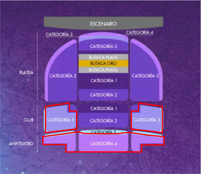 • Con esta oferta podrás escoger entrada tanto en el Anfiteatro (Categoría 4) como en el Club (Categoría 3). A continuación podrás ver dónde sería cada entrada: