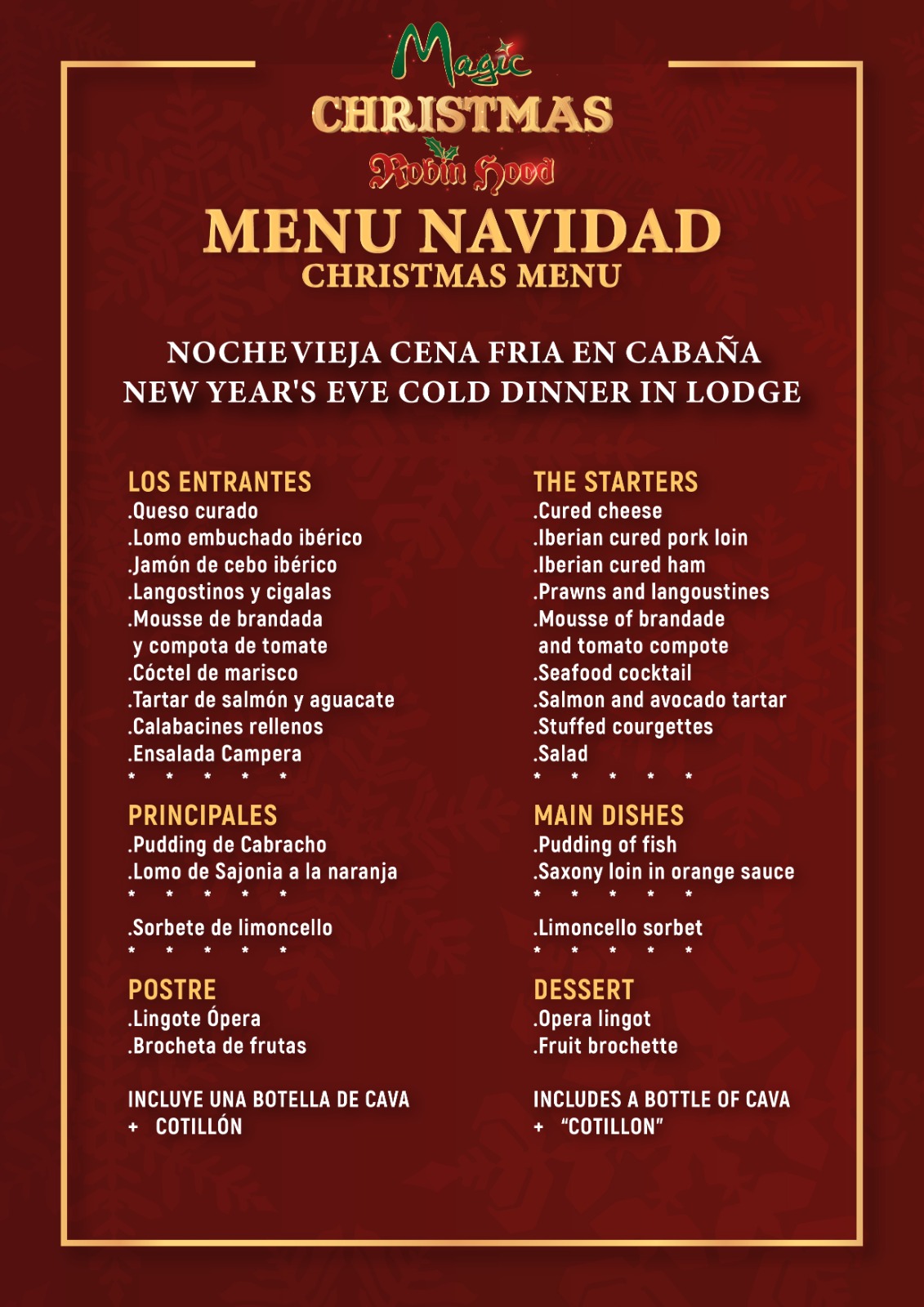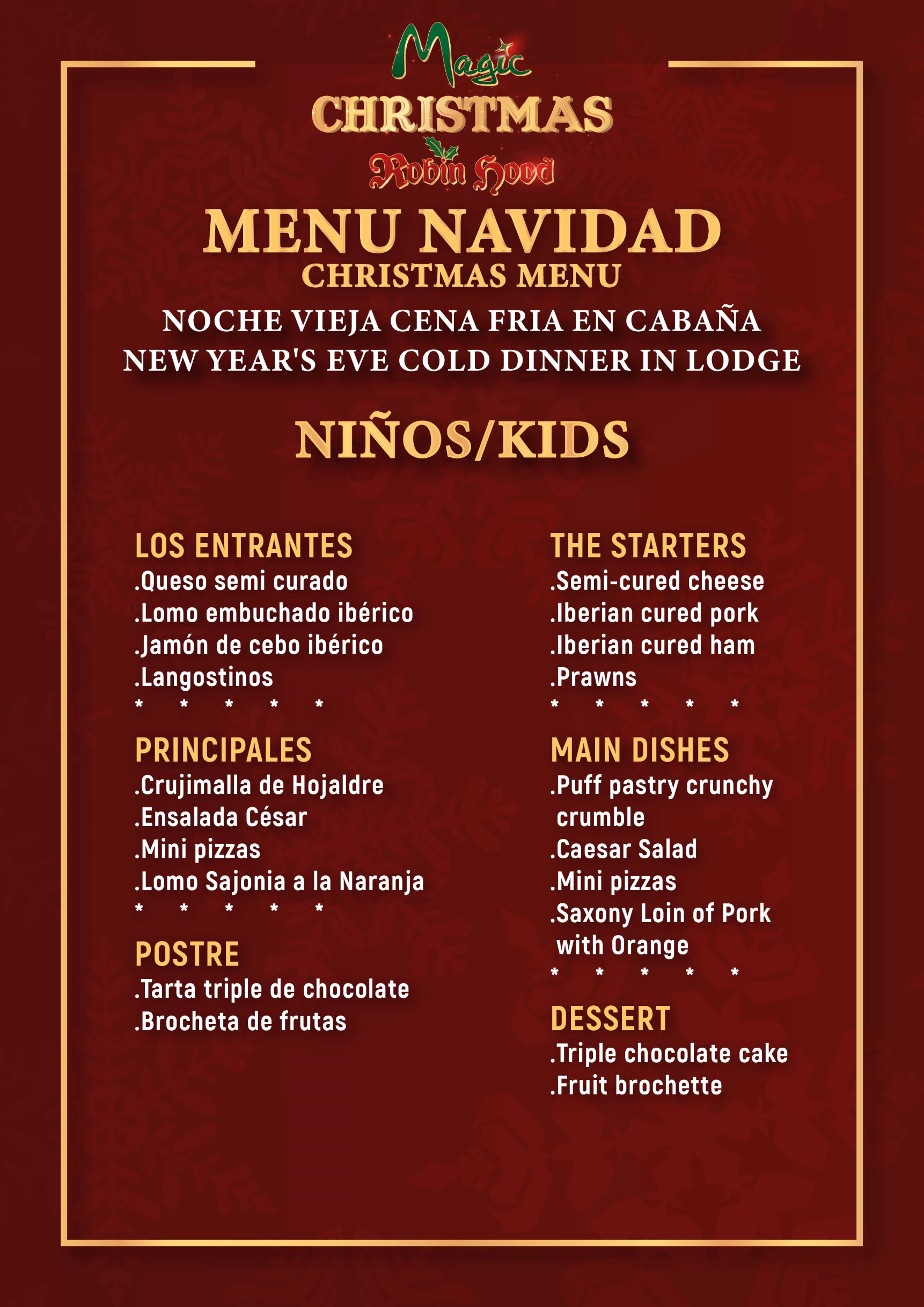 • El día 31 de diciembre, la cena te la servirán en tu cabaña. ¡Tienes más detalles a continuación!