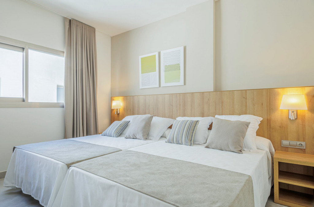 • Estos están equipados con: 1 habitación con 2 camas dobles y 1 sofá-cama en el salón para otras 2 personas. Además, la cocina cuenta con menaje básico, microondas, nevera, teléfono, televisión, aire acondicionado y caja fuerte gratuita.