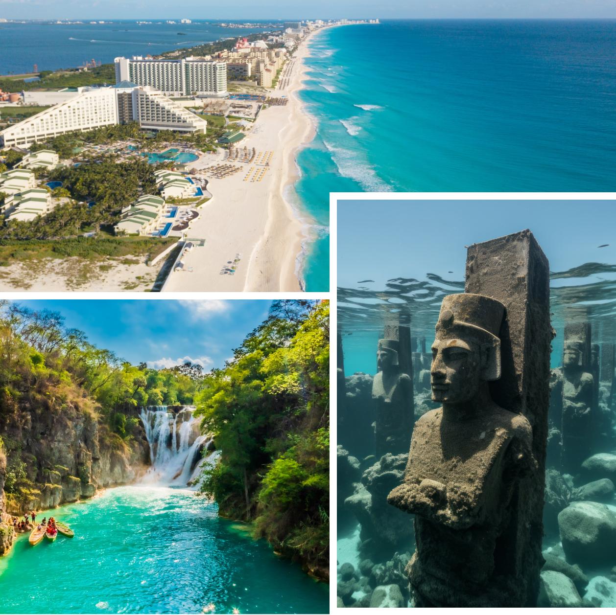 • Bajo las aguas del mar Caribe encontrarás el Museo Subacuático del Arte, hay casi medio millar de esculturas a escala natural. Podrás visitarlo desde las profundidades del mar haciendo buceo, snorkel o, desde la superficie, en barcos de cubierta de cristal ¡lo que prefieras!