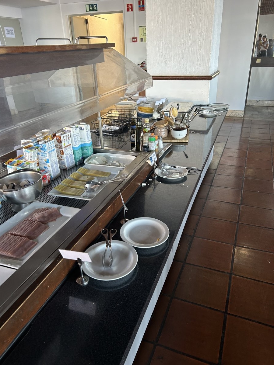 Comidas con poca variedad e incluso días donde se nos daba la comida en el bar de la piscina. Las 4 estrellas no son reales.