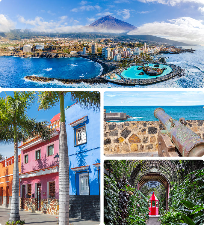 ¿Qué visitar? El gran emblema de la isla es el Parque Nacional del Teide, declarado Patrimonio de la Humanidad por la UNESCO, donde podrás admirar el imponente volcán y sus formaciones rocosas. No te pierdas La Laguna, con su encantador casco histórico colonial, ni Santa Cruz de Tenerife, una ciudad viva con museos, plazas y una animada vida local. Para disfrutar del ambiente costero, el pintoresco pueblo de Garachico o los acantilados de Los Gigantes te dejarán sin palabras.