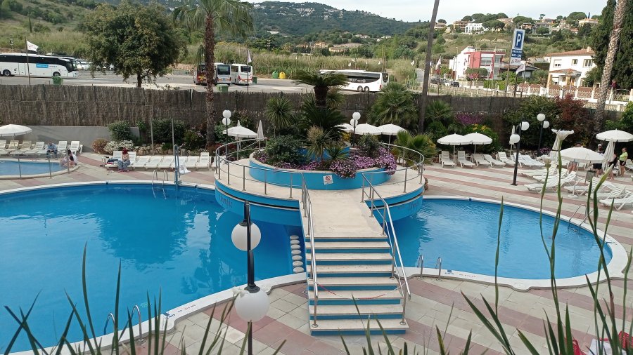 Sus piscinas y demás zonas comunes están muy bien y la comida también.