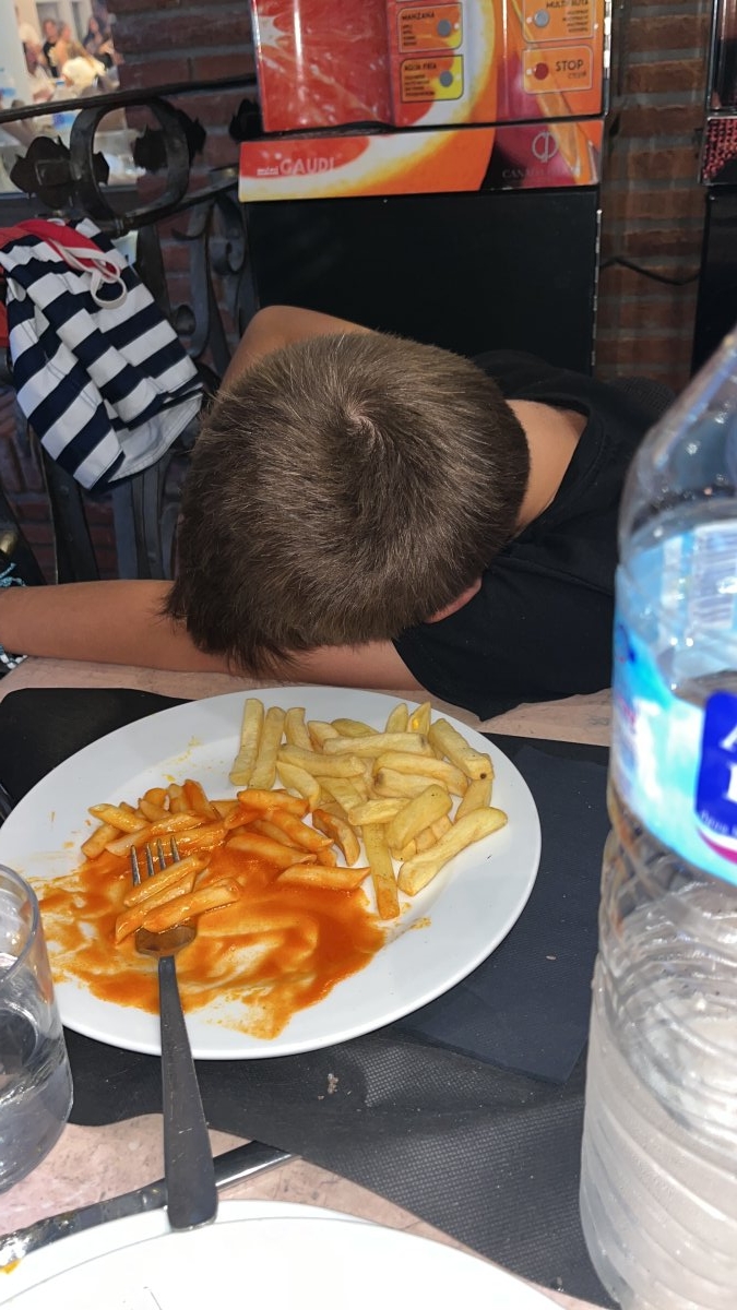 Supongo que los camareros tienen esas instrucciones pero es que era incómodo porque estaban excesivamente vigilantes. Te retiraban los platos muy muy rápidamente todavía estabas con el último bocado en la boca y el tenedor en la mano que ya te retiraban el plato. Una de las veces me fijé en un comensal que tenía dos platos que iba comiendo, en uno tenía lo que sería la guarnición y en el otro dos trozos de pescado a la plancha, pues resulta que se acabó primero una de las piezas del pescado y fue la camarera a retirarle el plato y le hizo poner el otro trozo de pescado que le quedaba en el plato de la guarnición para así podérselo llevar, increíble, yo no daba crédito a lo que veía. Además retiraban la comida antes del horario, cuando preguntamos porqué nos dijeron que ya habíamos entrado todos los que teníamos que comer y ya no entraría nadie más. A ver qué ya estábamos en los postres però y si alguien se lo repiensa y de pronto quiere comer algo más? Pues ya no podría. Este tipo de cosas són desagradables