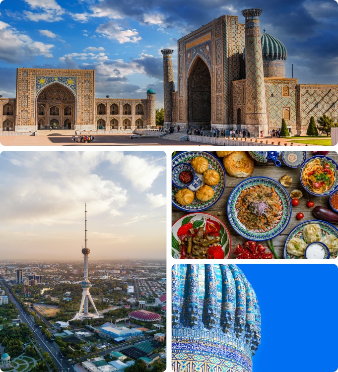 - Samarcanda: Ciudad de ensueño y cuna de la Ruta de la Seda, con la impresionante Plaza Registán.