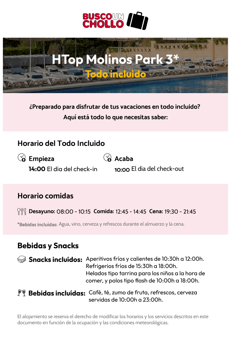 • Para consultar los servicios incluidos en el régimen de Todo Incluido, ¡pulsa aquí!