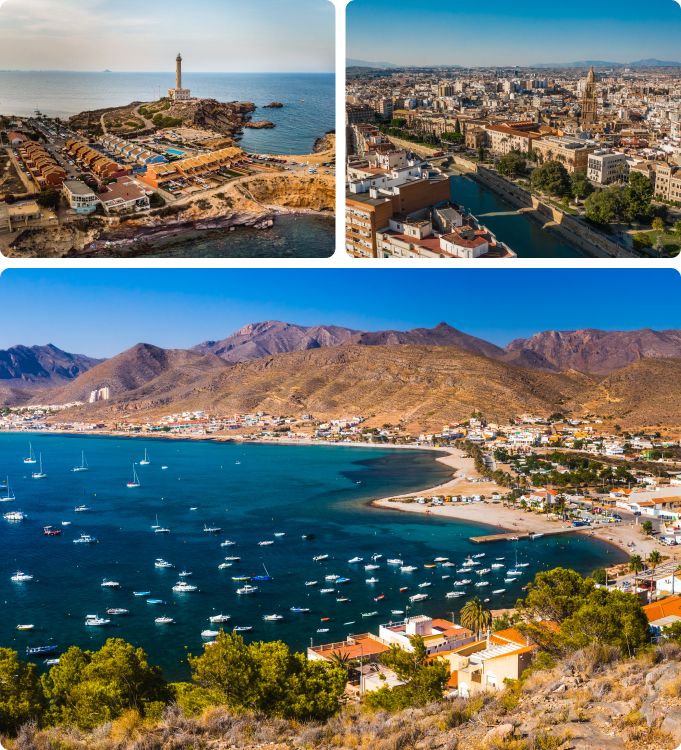 • Cartagena: Ciudad histórica con teatro romano, puerto y museos, como el Museo Nacional de Arqueología Subacuática.