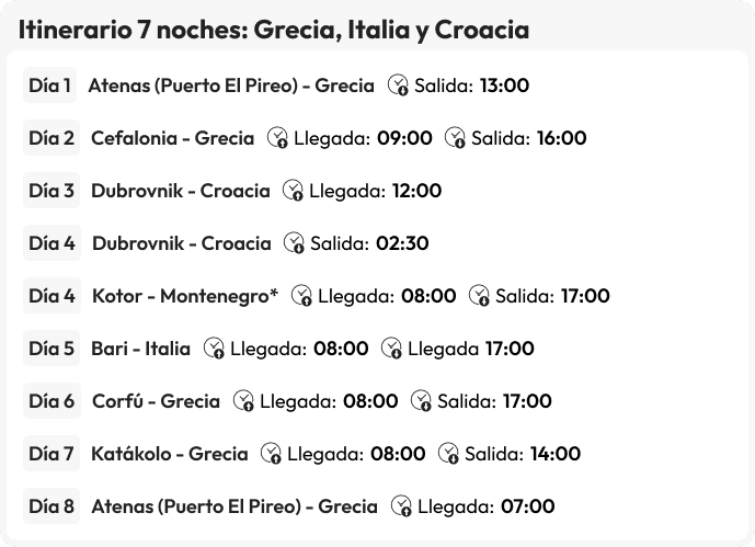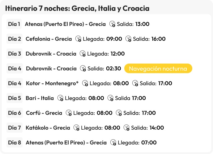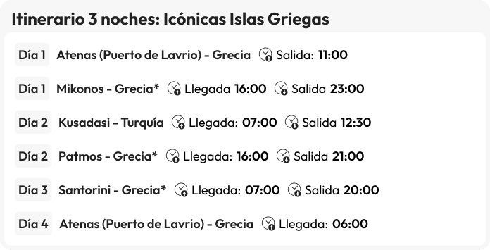 - Itinerario de 3 noches a bordo del Celestyal Discovery