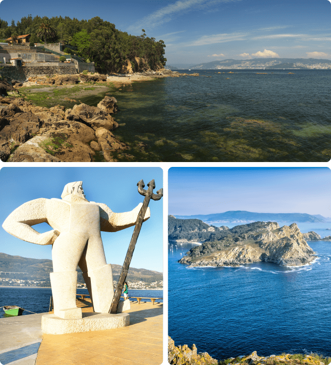 • Desde Moaña puedes hacer una excursión en barco hasta las Islas Cíes, un auténtico paraíso natural. También puedes acercarte a Vigo en pocos minutos en coche o incluso en barco, o visitar la cercana localidad de Cangas, con su encantador casco antiguo y playas como Areamilla o Rodeira.