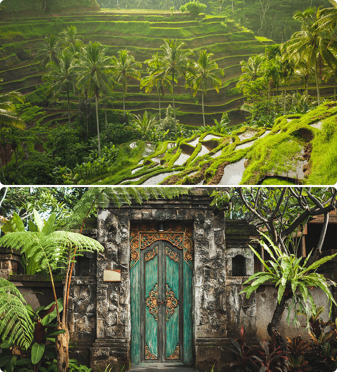 En cada rincón hay historia, espiritualidad y belleza. Visita templos como Tanah Lot o Uluwatu, explora los campos de arroz de Tegallalang y sumérgete en las ceremonias balinesas llenas de color, incienso y tradición.