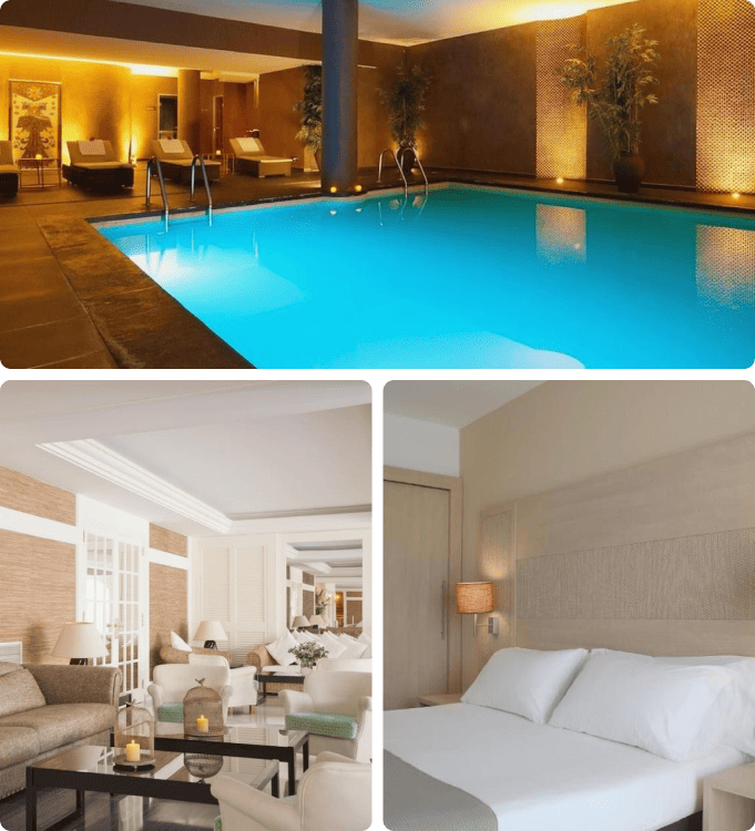Escápate a un entorno de bienestar con su moderno spa, saunas y circuito termal, ideales para desconectar completamente. Relájate junto a sus piscinas exteriores e interiores, rodeado de jardines cuidadosamente diseñados.