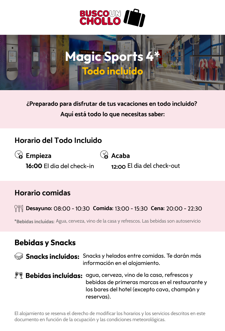 • Con este chollo te alojarás en una de las habitaciones del Magic Sports, ten en cuenta que no podrás elegirla, ¡pero todas son perfectas para los amantes del deporte!