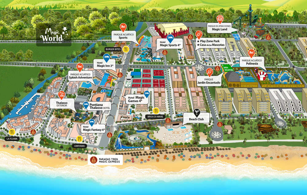 • Además, los principales servicios de Magic World estarán conectados por los Magic Express, dos trenes que recorrerán el resort durante todo el día para una máxima comodidad.