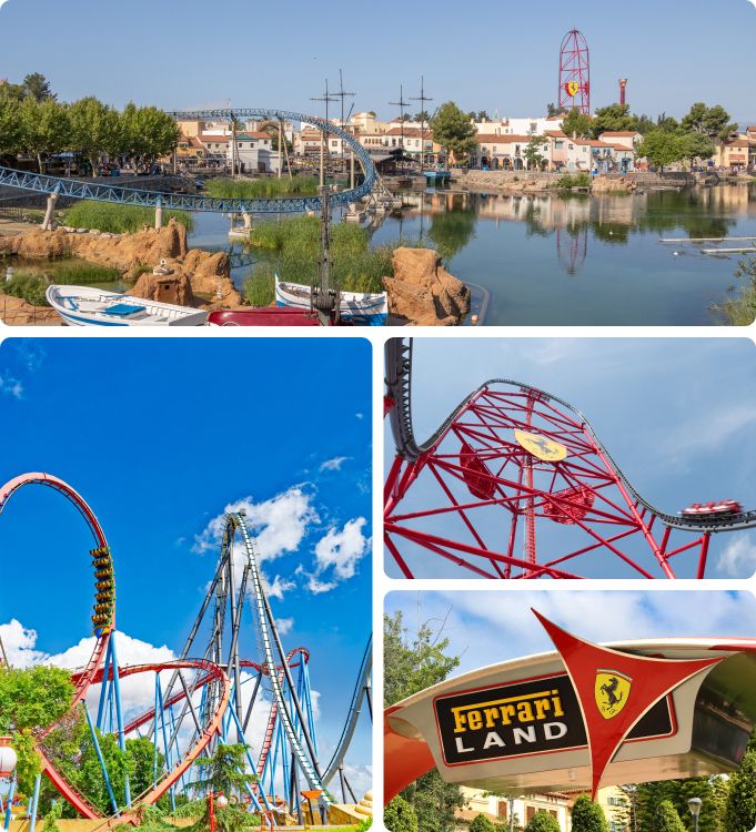 - Además, podrás disfrutar de Ferrari Land, el único parque temático dedicado a Ferrari de Europa. Un homenaje al patrimonio artístico italiano y un tributo a Enzo Ferrari, creador de la mítica marca italiana. Podrás descubrir Red Force, el acelerador vertical más alto y rápido de Europa; Flying Dreams o los 8 simuladores semiprofesionales de F1.