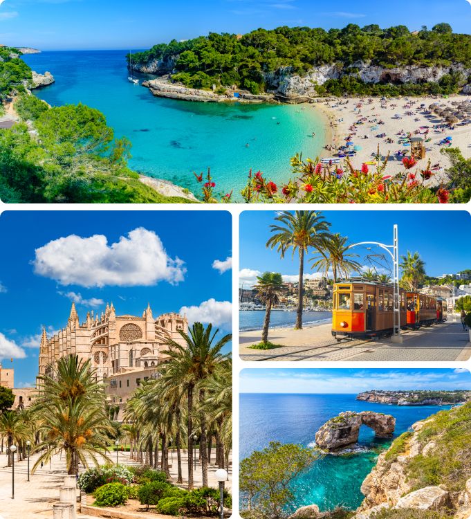 • Playas y calas: Con casi 550 km de costa, Mallorca ofrece algunas de las calas más hermosas del Mediterráneo, ideales para disfrutar del sol y el mar.