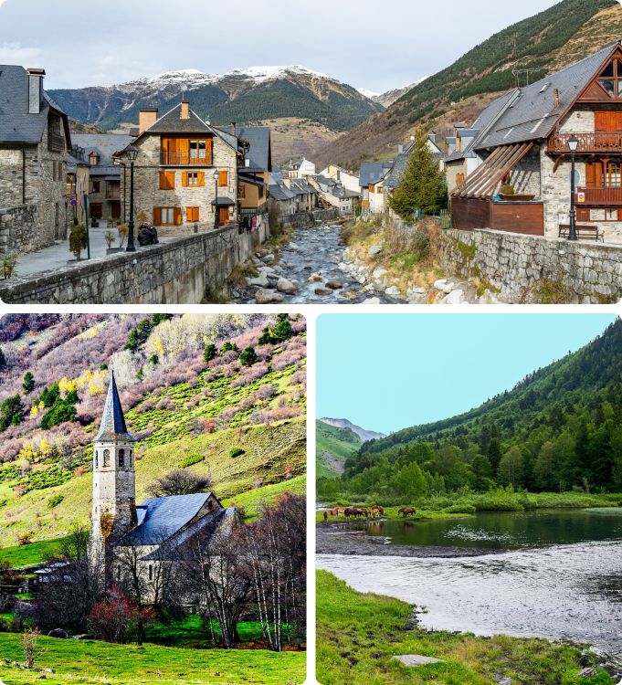 • Recorrer Vielha, la capital del valle, es una parada imprescindible para disfrutar de su ambiente, sus tiendas y su oferta gastronómica. El valle está salpicado de pequeñas joyas del románico aranés, como la iglesia de Sant Miquèu de Vielha o las de Arties y Salardú, pueblos que conservan calles empedradas y casas tradicionales que parecen sacadas de un cuento. Además, los paisajes naturales que rodean todo el valle forman parte del encanto del destino y acompañan cada desplazamiento.