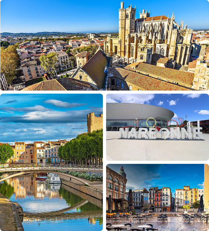El corazón de la ciudad gira en torno a la imponente Catedral de San Justo y San Pastor, una de las catedrales góticas más altas de Francia, que domina el casco antiguo con su silueta monumental. Muy cerca se encuentra el Palacio de los Arzobispos, hoy convertido en museo y mirador, desde donde se obtienen unas vistas preciosas de la ciudad. Pasear junto al Canal de la Robine, declarado Patrimonio de la Humanidad, es otra visita imprescindible, especialmente al atardecer, cuando la ciudad muestra su lado más animado y relajado.