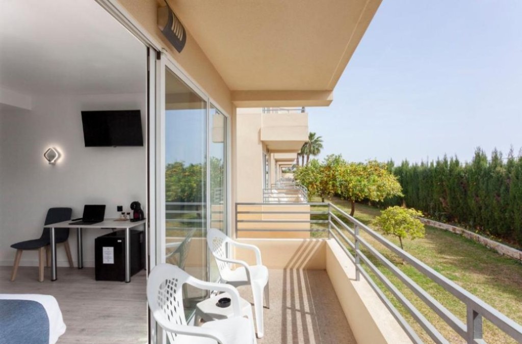 El hotel cuenta con habitaciones luminosas, bien equipadas y pensadas para el confort diario, además de agradables zonas comunes. Su piscina al aire libre rodeada de jardín invita a desconectar y aprovechar al máximo el clima mediterráneo.