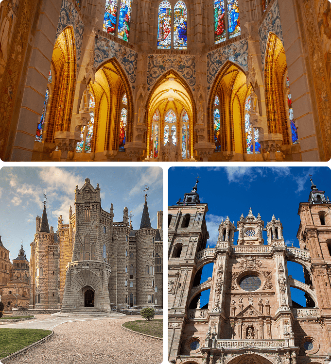• El corazón de la ciudad gira en torno a la Catedral de Astorga, un imponente templo que mezcla estilos gótico, renacentista y barroco y que domina el casco histórico. Justo al lado se encuentra el Palacio Episcopal de Astorga, una de las pocas obras de Gaudí fuera de Cataluña, que parece sacada de un cuento. Tampoco puede faltar un paseo por la Muralla romana de Astorga, perfectamente conservada y clave para entender el origen milenario de la ciudad.