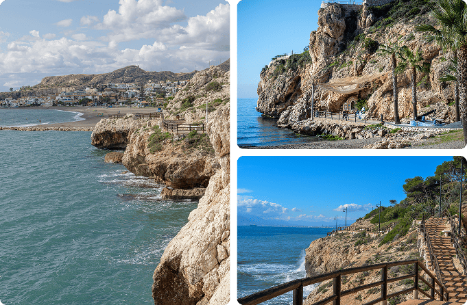 • Uno de los grandes atractivos del municipio es la Cueva del Tesoro, una de las pocas cuevas marinas visitables de Europa, cargada de historia y leyendas. El paseo marítimo invita a caminar junto al mar entre chiringuitos y terrazas, mientras que la zona de El Cantal sorprende por sus acantilados y miradores con vistas al Mediterráneo. El centro del Rincón mantiene ese aire de pueblo costero que se agradece para pasear sin prisas.