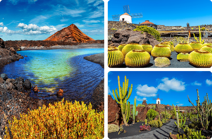 ¿Qué visitar? Uno de los grandes iconos de la isla es el Parque Nacional de Timanfaya, donde los paisajes de lava y cráteres parecen sacados de otro planeta. También merece la pena descubrir los Jameos del Agua, una impresionante obra de arte integrada en un tubo volcánico, o pasear por Teguise, la antigua capital, llena de encanto e historia. El Mirador del Río, con vistas espectaculares a La Graciosa, es otro de esos lugares que no se olvidan fácilmente.