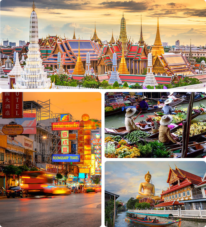Bangkok (Tailandia): La ciudad más vibrante de Asia. Disfruta de sus templos dorados, el caos encantador de sus mercados y su famosa comida callejera.