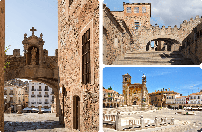 Muy cerca de la ciudad puedes visitar Trujillo, famosa por su castillo y su espectacular plaza mayor, o Plasencia, con un casco histórico encantador y una ubicación privilegiada junto al Valle del Jerte, perfecta para completar la escapada con un toque de naturaleza.