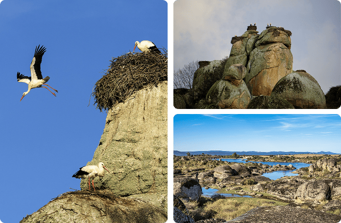 La Capital Europea de la Cigüeña: Malpartida ostenta este título con orgullo. Es uno de los lugares del mundo con mayor densidad de cigüeñas blancas, que anidan sobre los enormes bolos de granito, creando una estampa única que no verás en ningún otro sitio.