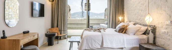 - Alojamiento en Panormos Bay Suites 5* ubicado en Mykonos.