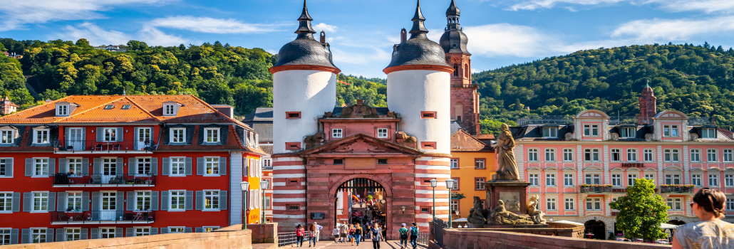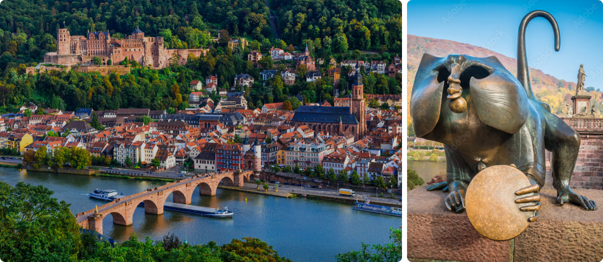 Ciudad universitaria de gran prestigio, alberga la universidad más antigua de Alemania (fundada en 1386). Su símbolo es el imponente Castillo de Heidelberg, una de las ruinas renacentistas más importantes de Europa, que domina el valle del río Neckar. El casco antiguo, con su calle peatonal Hauptstrasse y el Puente Viejo, conserva un marcado carácter romántico que la convierte en uno de los destinos más visitados del país.