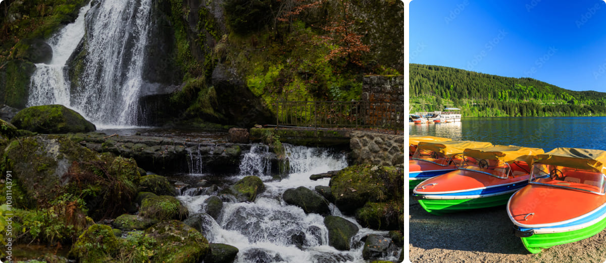 Región natural del suroeste alemán caracterizada por densos bosques, colinas onduladas y pintorescos pueblos tradicionales. Famosa por sus relojes de cuco, sus casas de gran tejado inclinado y su repostería típica —como la tarta Selva Negra—, ofrece también lagos glaciares como el Titisee y rutas panorámicas entre naturaleza y tradición. Es uno de los destinos rurales más emblemáticos de Alemania, ideal para disfrutar de paisajes alpinos suaves y autenticidad cultural.