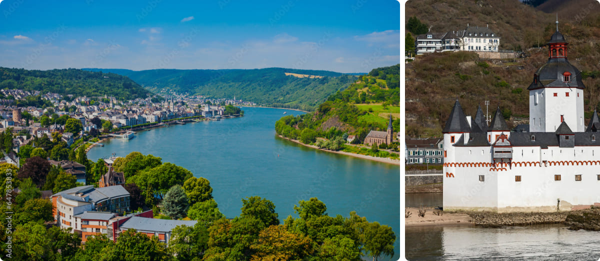 El tramo medio del Rin, entre Coblenza y Rüdesheim, está declarado Patrimonio de la Humanidad por la UNESCO por su espectacular paisaje cultural. A lo largo del recorrido se suceden castillos medievales, fortalezas en lo alto de colinas, viñedos en terrazas y pequeños pueblos históricos. Este entorno está ligado al romanticismo alemán y a leyendas como la de la roca Loreley. El crucero permite disfrutar cómodamente de uno de los paisajes fluviales más bellos y representativos de Europa Central.