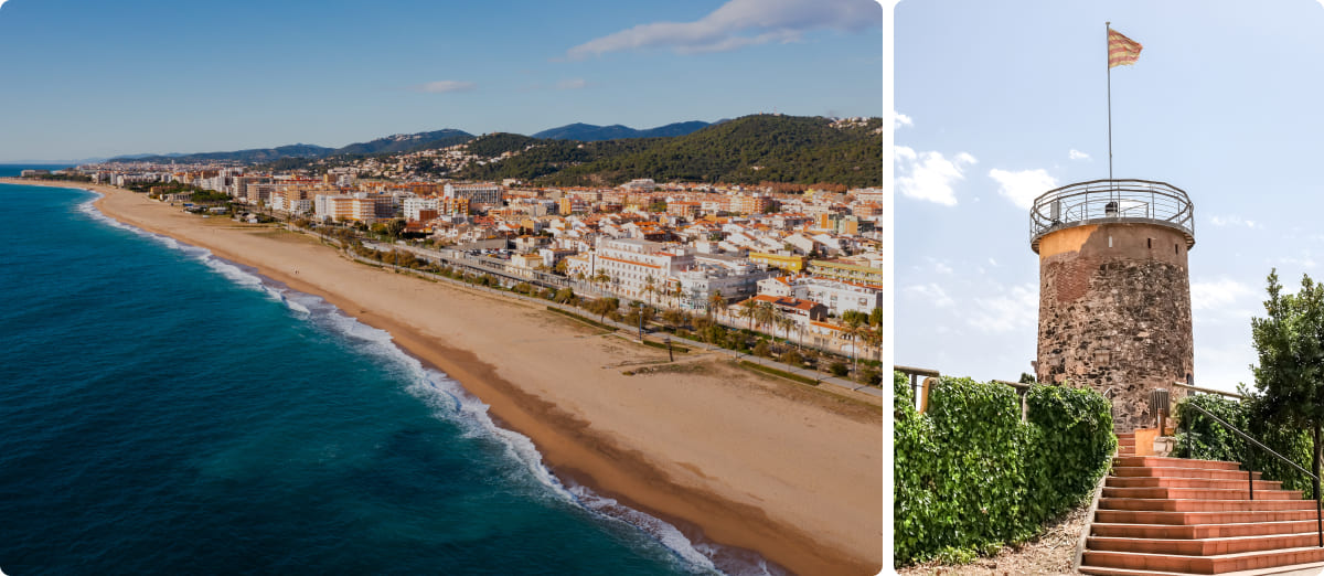 A lo largo de la costa destacan localidades como Calella, conocida por su animado paseo marítimo y su ambiente vacacional, o Santa Susanna, muy valorada por sus playas amplias y cuidadas. Mataró, capital de la comarca, combina tradición marinera con un centro histórico interesante, mientras que Arenys de Mar conserva la esencia de antiguo pueblo de pescadores.