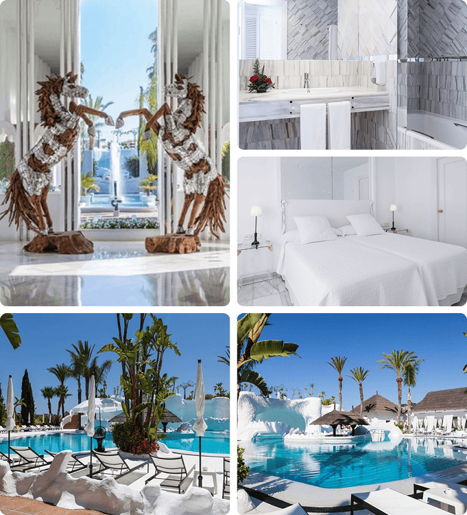 Su espectacular zona de piscina es otro de sus grandes iconos, con grutas, puentes y cascadas que crean un ambiente exótico y refrescante incluso en los días más calurosos.