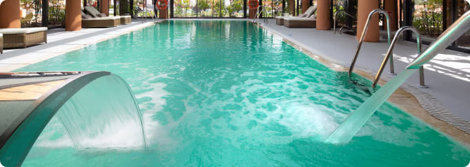 • Los niños menores de 16 años únicamente pueden acceder a la piscina interior. El horario de acceso es de 13:00h a 16:00h.