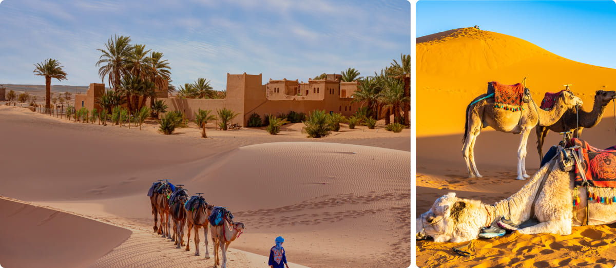 - 7 noches: 4 noches en Marrakech, 1 noche en el Valle del Río Dades, 1 noche en Merzouga y 1 noche en Ouarzazate.