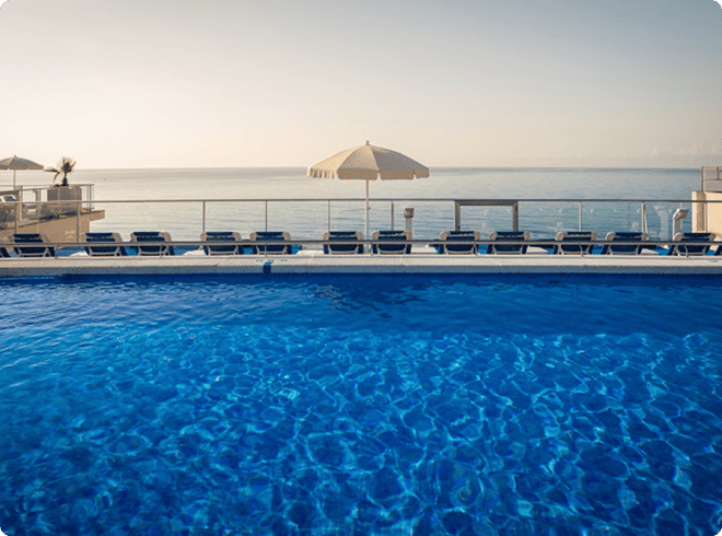 Disfruta de su piscina en la azotea con vistas al Mediterráneo, spa privado con jacuzzi y sauna, gimnasio moderno y zona de ocio con animación para adultos.
