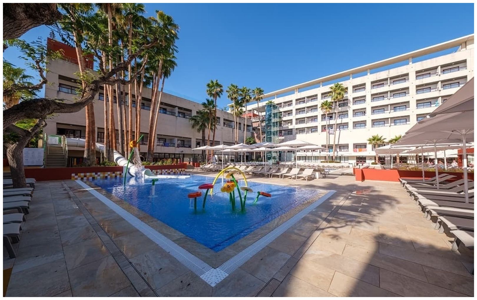 El hotel pertenece a un resort, 3 hoteles juntos, puedes disfrutar de las zonas comunes de los 3 hoteles, es decir, de las 3 piscinas y comer en cualquiera de los 3 restaurantes. Las instalaciones están muy bien y la limpieza es un diez. También puedes acceder a una zona spa y a instalaciones deportivas. Lo mejor, la piscina del ático, con acceso solo para mayores de edad.