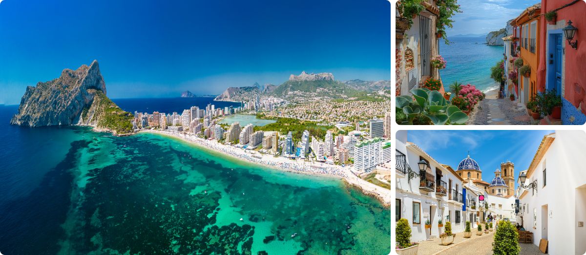 Entre sus imprescindibles destacan el animado paseo marítimo de Benidorm, ideal para disfrutar del ambiente y las vistas al Mediterráneo, el casco antiguo de Altea, con sus calles blancas y su icónica cúpula azul, o el imponente Castillo de Santa Bárbara en Alicante, desde donde tendrás unas panorámicas espectaculares. También merece la pena perderse por Villajoyosa, famosa por sus coloridas casas junto al mar, y descubrir Calpe, con su emblemático Peñón de Ifach dominando el paisaje.
