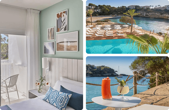 En la animada zona de Cala d'Or, el Barceló Ponent Beach se asoma directamente a una pequeña cala de aguas turquesas, convirtiéndose en una opción perfecta para quienes buscan mar, comodidad y buen ambiente.