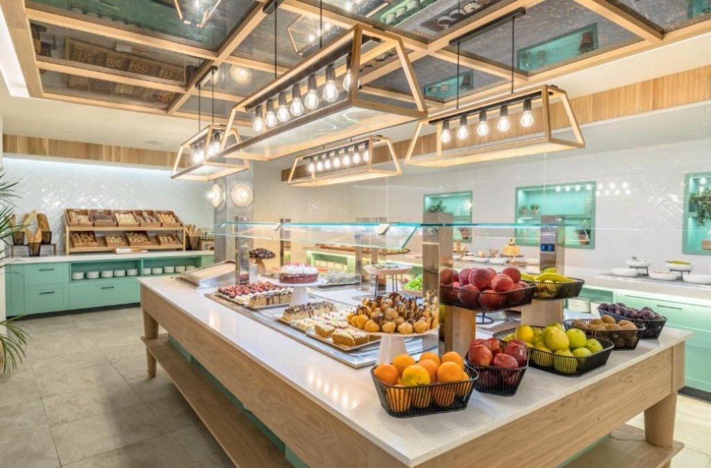 El hotel ofrece completas instalaciones con piscinas exteriores, zonas solárium y acceso directo a la playa. Además, cuenta con restaurante buffet, bares y espacios pensados para disfrutar tanto de día como de noche en un entorno relajado.