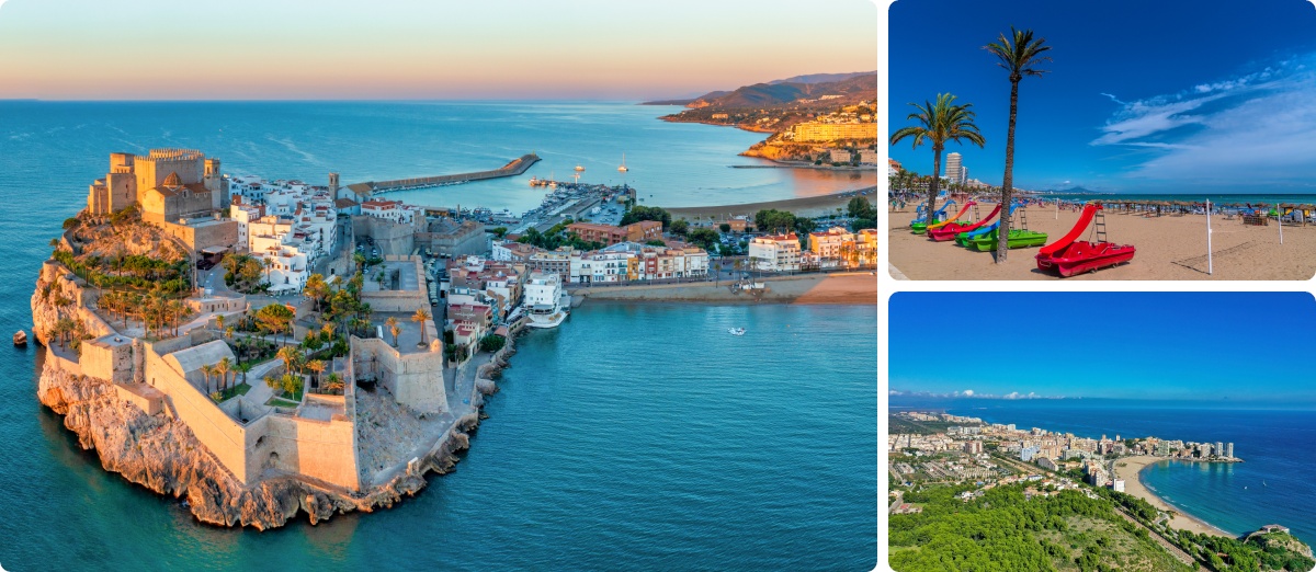 Entre sus imprescindibles destacan Peñíscola, con su imponente castillo templario frente al mar y su casco antiguo lleno de callejuelas con encanto, Benicàssim, famoso por su ambiente veraniego y su paseo marítimo, o Castellón de la Plana, donde podrás pasear por su centro histórico y descubrir lugares como la Concatedral de Santa María. Tampoco puede faltar una visita a Oropesa del Mar, perfecta para disfrutar de un ambiente familiar junto al Mediterráneo.