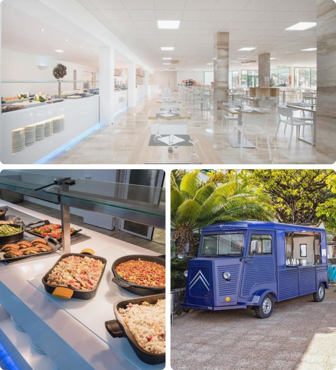 Snacks y meriendas: Para esos momentos de picoteo entre horas, tendrás acceso a una selección de aperitivos en el bar de la piscina o en el Food Truck.