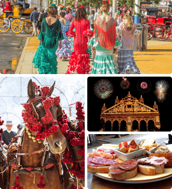 Imagina cruzar la portada iluminada mientras suenan sevillanas, perderte entre casetas llenas de vida, brindar con un rebujito y dejarte llevar por un ambiente que no se parece a nada que hayas vivido antes. Aquí no vienes solo a ver… vienes a formar parte.
