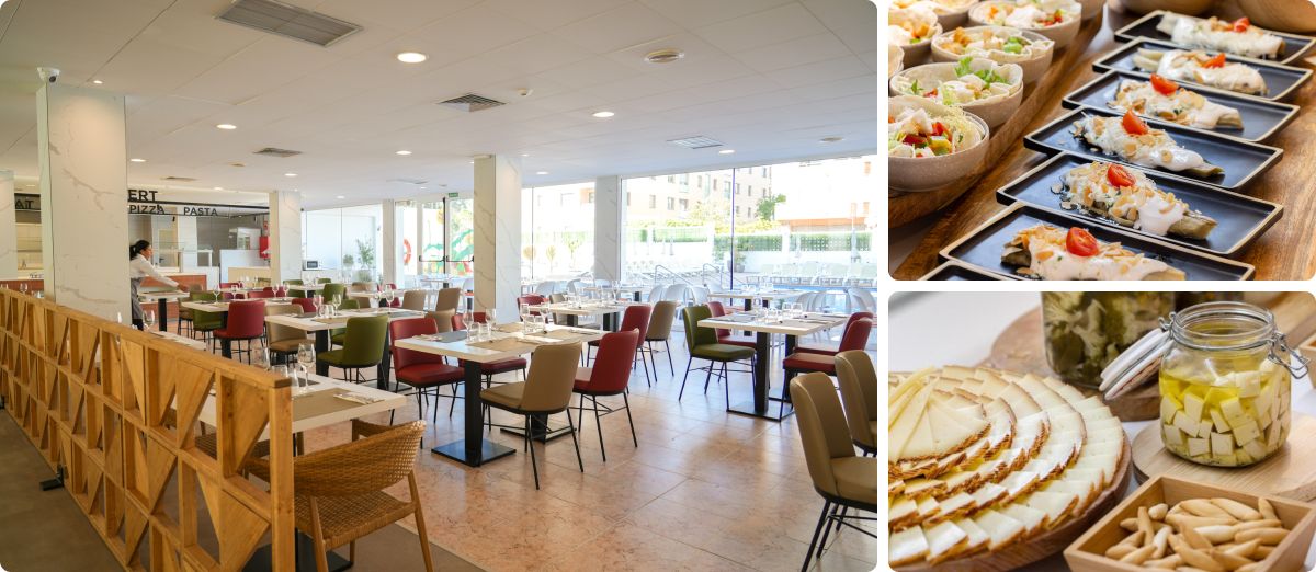 • Rincones para todos: Desde desayunos energéticos para empezar el día con fuerza hasta cenas relajadas con vistas, el hotel ofrece espacios amplios y acogedores pensados tanto para los paladares más sibaritas como para los más pequeños de la casa.