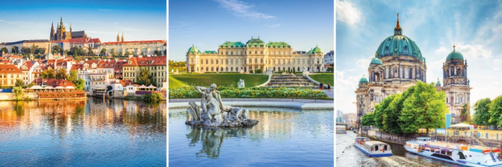 • 7 noches (2 noches en Berlín + 3 noches en Praga + 2 noches en Viena) alojados en hotel 3*.